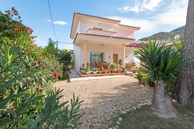 Beautiful villa of 220m2 built distributed as follows: GROUND FLOOR consisting of a fully fitted kitchen, a bedroom with fitted wardrobes, a toilet and a spacious living room with access to the front and back terrace as well. On this floor the house has a terrace at the front of the house - at the entrance - and another one in the back garden. FIRST FLOOR: one bedroom with a terrace facing the garden and 2 other bedrooms sharing a second terrace with sea views. The villa has a garden surrounding the house, full of trees and plants - space where you can set up a swimming pool.