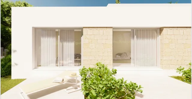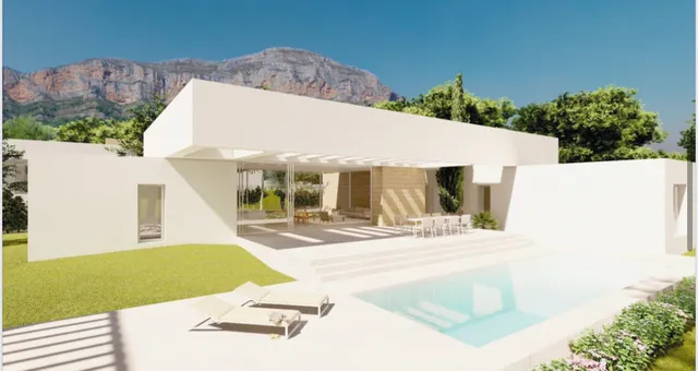 Moderne Villa im Bau, die im April 2025 fertiggestellt werden soll! In den Ausläufern des Montgó gelegen, mit freiem Blick auf das Tal. Perfekt verbunden. Das Haus der zeitgenössischen Design, mit geraden Linien und funktionale Verteilung, ist komplett auf einer Etage entwickelt.