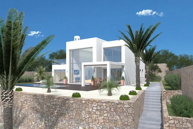 Villenprojekt auf der Spitze eines Hügels im Landesinneren von Jávea, mit spektakulärem Blick über das ganze Tal, ganz Jávea, das Meer und den Montgó sowie das Kap von San Antonio.