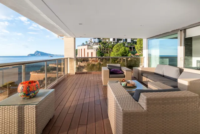 Die Wohnung befindet sich in der achten Etage und verfügt über 150 m², die so gestaltet sind, dass sie ein Maximum an natürlichem Licht und Komfort bieten. Sie verfügt über eine spektakuläre Terrasse, auf der man die Sonnenaufgänge genießen kann, die nur das Mittelmeer bieten kann. Sie verfügt über drei Hauptschlafzimmer, alle mit Doppelbetten, und zwei Bäder, eines davon en suite im Hauptschlafzimmer.