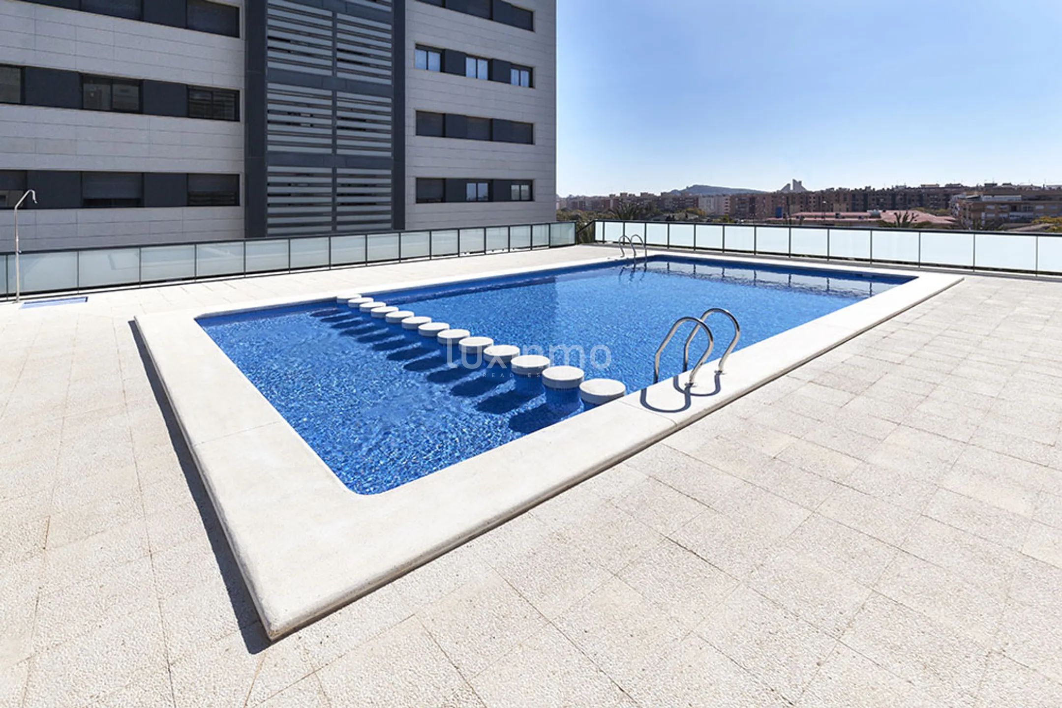 Las Torres de Gran Vía, este nuevo edificio en Alicante, que consta de 56 apartamentos, de 3 y 4 dormitorios, todos con terraza. Los áticos tienen un solarium de 80 y 88 m2 y unas vistas espectaculares.