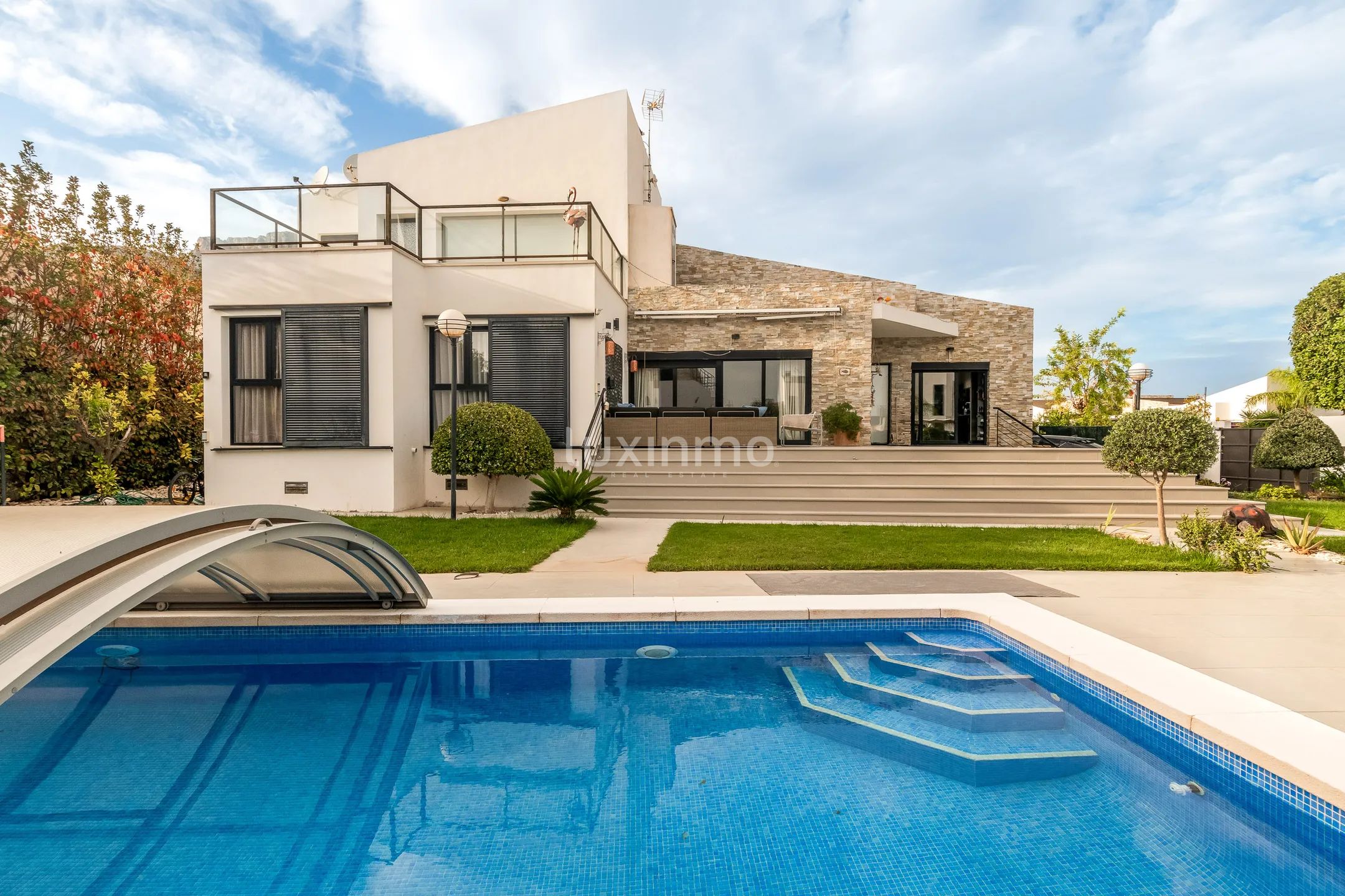 Un magnifique jardin privé avec piscine chauffée, parfait pour profiter d'une baignade rafraîchissante pendant les mois les plus chauds et créer une atmosphère sereine et relaxante. La maison est équipée de l'air conditionné et du chauffage central, assurant un confort optimal tout au long de l'année. Des armoires encastrées offrent un vaste espace de rangement dans chacune des quatre chambres. Des panneaux solaires respectueux de l'environnement sont installés, fournissant une énergie durable à la propriété.