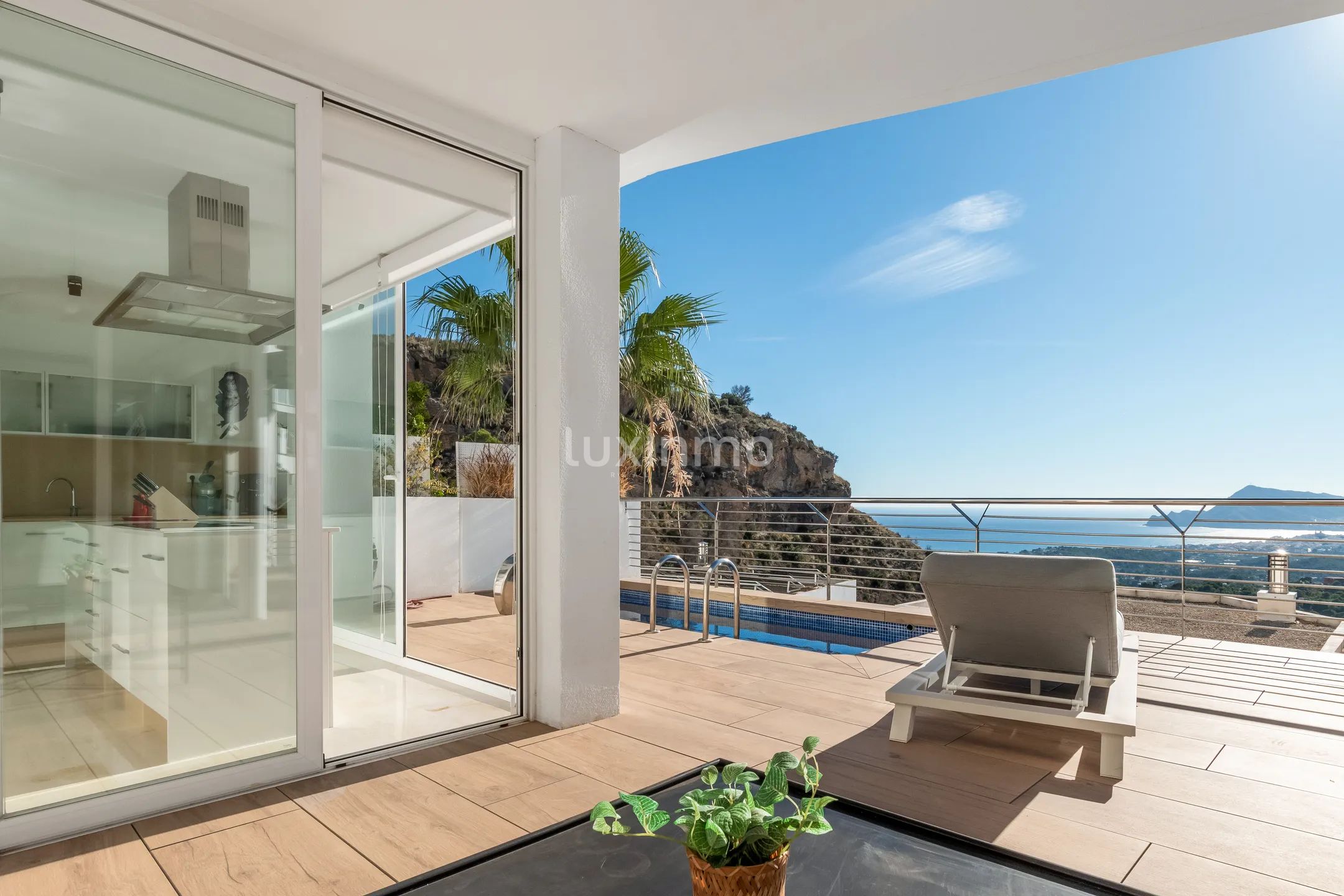 Bienvenue dans cette villa de luxe magnifiquement rénovée, située dans la prestigieuse Sierra Altea, à Altea. Ce joyau de l'architecture moderne est parfait pour ceux qui apprécient les belles choses de la vie. Construite en 2009, cette propriété orientée au sud offre une vue imprenable sur la mer et les montagnes et dispose d'une généreuse surface construite de 303m2. La propriété dispose de 4 chambres spacieuses et de 5 salles de bains bien aménagées, offrant un grand espace pour la famille et les invités.