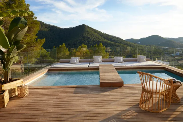 La propriété est couronnée par une spectaculaire piscine sur le toit, entourée d'une terrasse en bois et offrant des vues à couper le souffle sur la vallée de Cala Llonga et les montagnes environnantes, une retraite parfaite pour des journées ensoleillées et des soirées tranquilles.