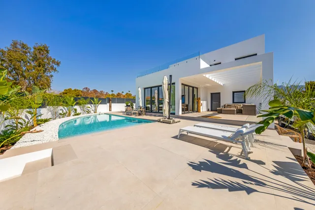 À l'intérieur, la villa est équipée de l'air conditionné, du chauffage au sol dans toute la propriété et de placards aménagés pour plus de confort. La technologie démotique de pointe et les panneaux solaires témoignent de l'engagement de la propriété en faveur de l'efficacité énergétique. Pour les soirées plus fraîches, la villa est équipée de systèmes de chauffage et de chauffage par le sol. La propriété est sécurisée par une porte blindée et des fenêtres à double vitrage.
