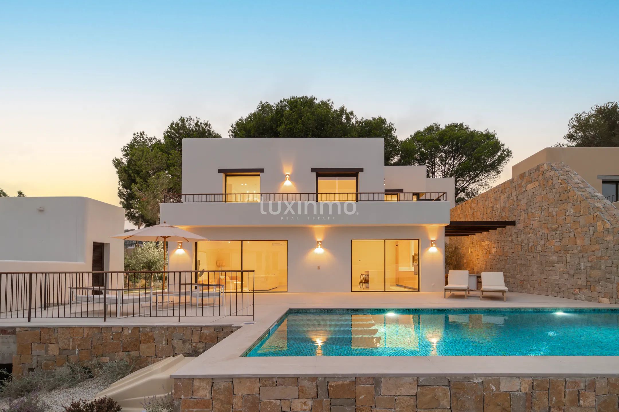 2 villas ont une vue sur la mer et les 4 autres villas ont une vue sur les montagnes et les environs. Les villas sont construites selon des normes élevées, avec isolation des murs et des toits, et ont un style Ibiza. Ces villas luxueuses sont construites sur des parcelles allant de 888m2 à 1145m2 et sont dotées d'une piscine privée et d'un parking pour 2 voitures.