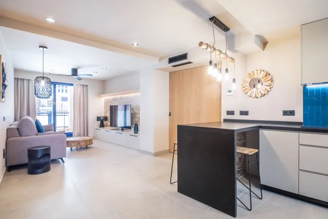 De volledig uitgeruste keuken biedt alles wat nodig is voor zelfgemaakte maaltijden. Het airconditioningsysteem en de verwarming zorgen het hele jaar door voor comfortabel wonen, terwijl de inbouwkasten in de slaapkamers voor voldoende bergruimte zorgen. Het appartement beschikt ook over domotica, met slimme woontechnologie voor extra gemak. De flat heeft een toeristenvergunning en biedt de mogelijkheid om inkomsten te genereren uit vakantieverhuur.