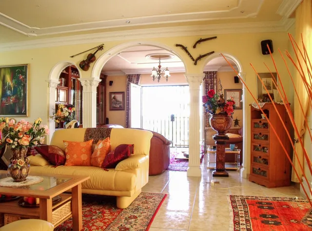 Velkommen til denne praktfulle eneboligen med 5 soverom og 4 bad i det prestisjetunge Canuta-Maryvilla-området i Calpe/Calp. Denne sørvendte eiendommen har en fantastisk arkitektonisk kolonistil og fantastisk utsikt over havet, fjellene, byen og landskapet. Huset ble bygget i 2005 og har et sjenerøst boareal på 460 m2 på en imponerende tomt på 3560 m2.