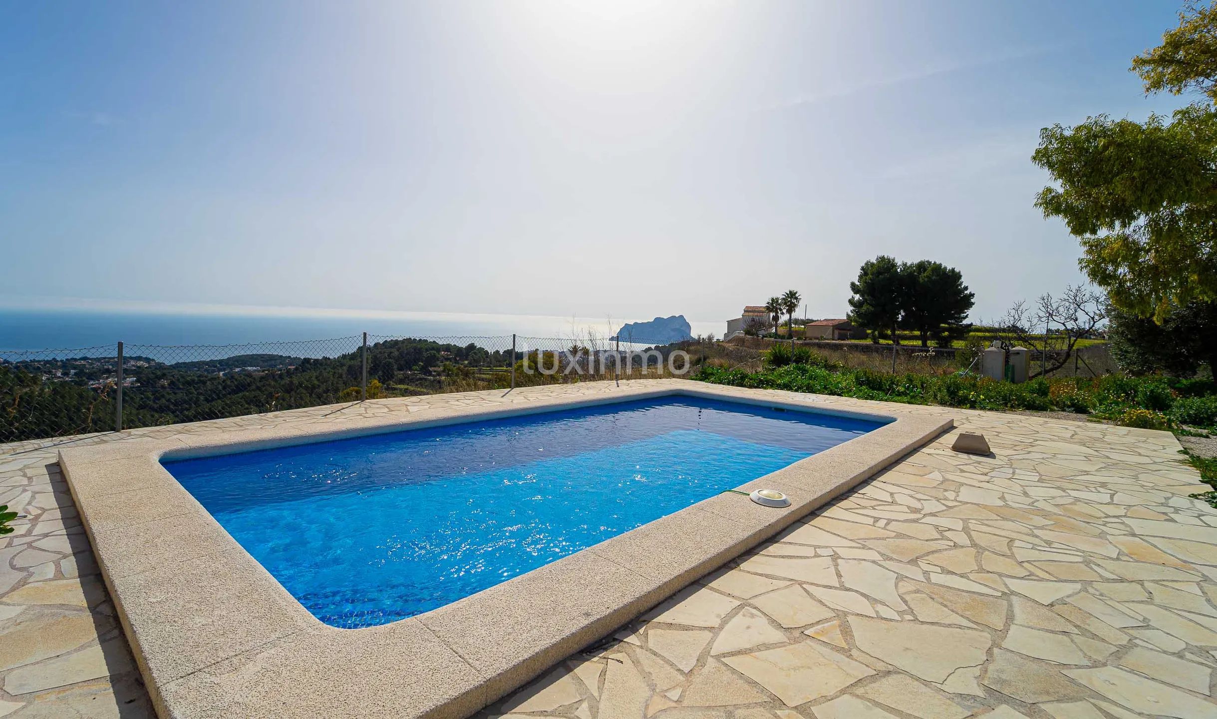 Finca med havutsikt til salgs i Benissa, Alicante. Tradisjonell finca med havutsikt og sørvendt. Fincaen har 336 m2 og 7 soverom, 4 bad på en tomt på 2900 m2 i Benissa.