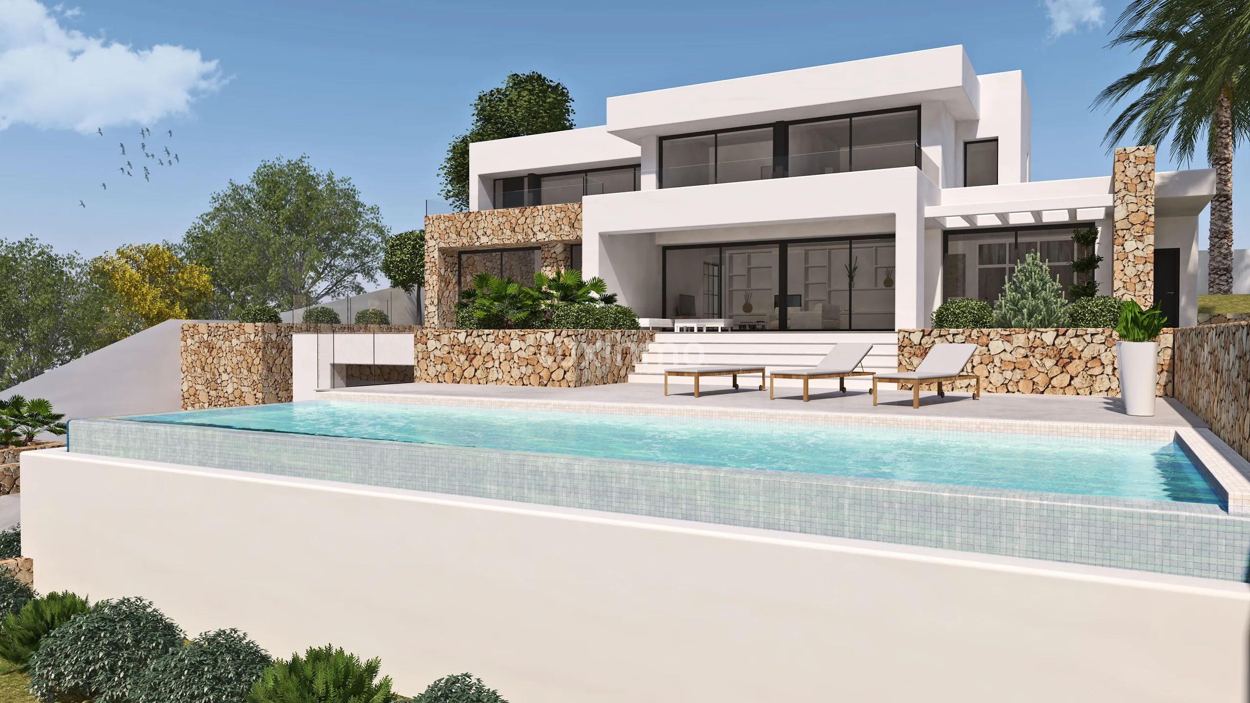 Privat hage med saltvann basseng Infinity stil 4x12m.