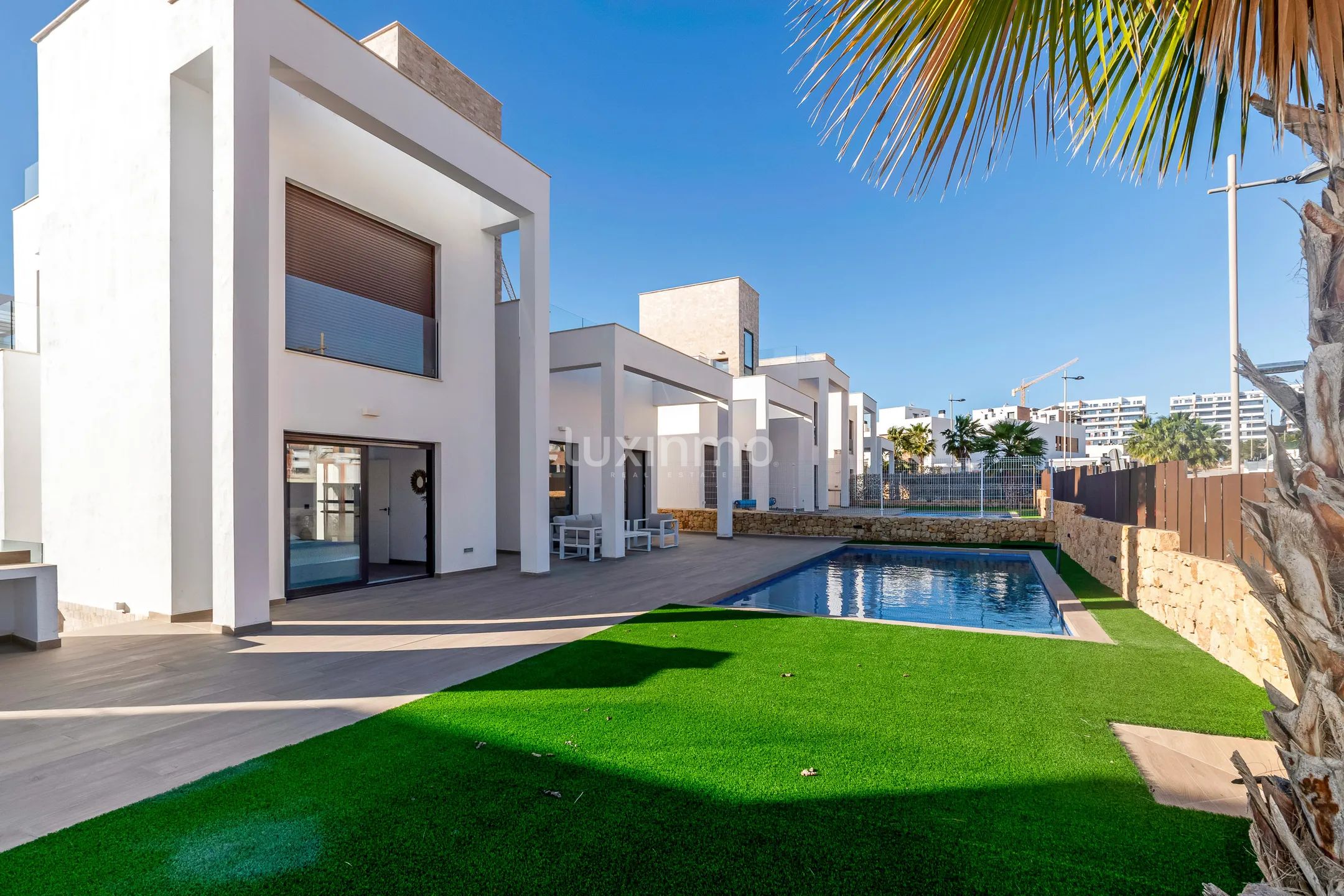Villaen er utstyrt med et bredt spekter av funksjoner som er designet for å forbedre komfort, funksjonalitet og livsstil. Det er tatt nøye hensyn til utendørslivet, med både enterrasse og en balkong som gir flere områder å nyte middelhavsklimaet på. Hovedterrassen er ideell for å skape et loungeområde, uteservering eller soling, mens balkongen tilbyr et mer privat sted, perfekt for en morgenkaffe eller kveldsavslapning med åpen utsikt. Et solarium på taket utvider mulighetene for utendørs opphold ytterligere, og tilbyr en stor, allsidig plass som kan brukes som et chill-out-område, solterrasse eller til og med for å installere et boblebad eller utekjøkken, avhengig av kjøperens preferanser.