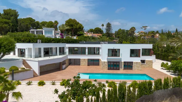 Vi presenterer en luksuriøs, nybygd, moderne enebolig som ligger i det prestisjetunge El Planet-området i Altea & L'Alfàs del Pi. Denne utsøkte eiendommen har enestående utsikt over havet, fjellene og byen, og kan skilte med et romslig boareal på 450 m2, 520 m2 bebygd areal og en sjenerøs tomt på 3000 m2. Med 5 velutstyrte soverom og 6 bad er dette sør- og østvendte hjemmet perfekt for deg som ønsker et moderne og stilfullt boareal.