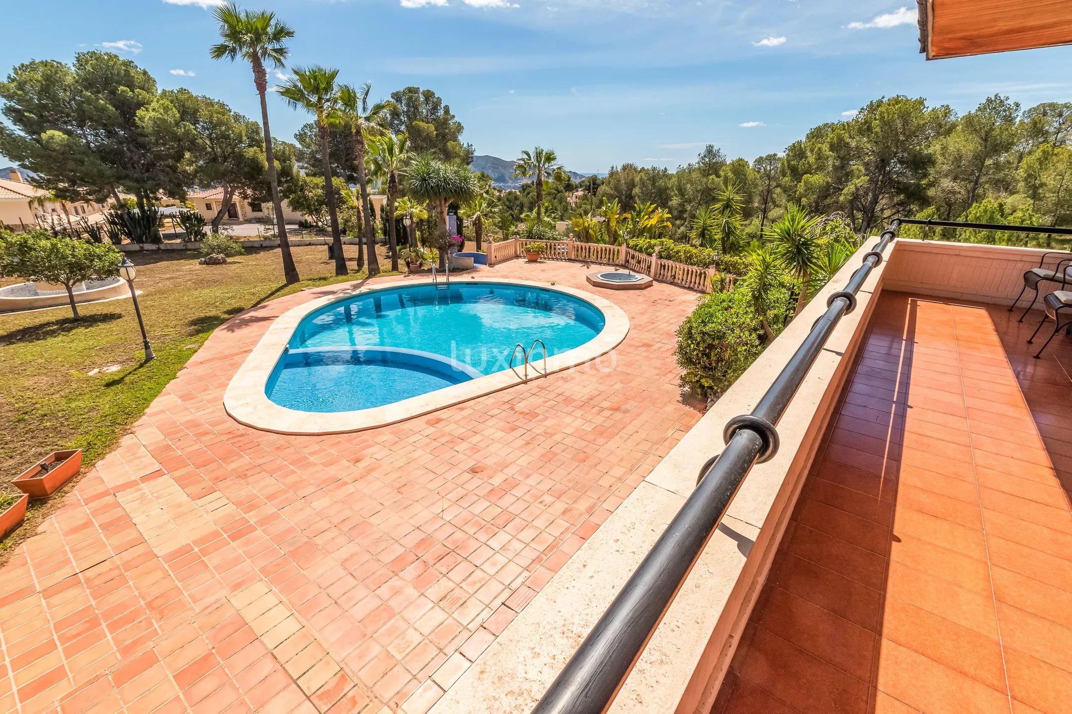 Velkommen til denne majestetiske villaen i rustikk kolonistil, som ligger i det vakre og rolige området Coloma, La Nucia. Denne eiendommen er for tiden til salgs og har en romslig tomt på 3450m2, med et boareal på 495m2 og et konstruert areal på 523m2. Denne sørøstvendte perlen ble bygget i 1980, og har en fantastisk fjellutsikt, 4 romslige soverom og 5 bad.