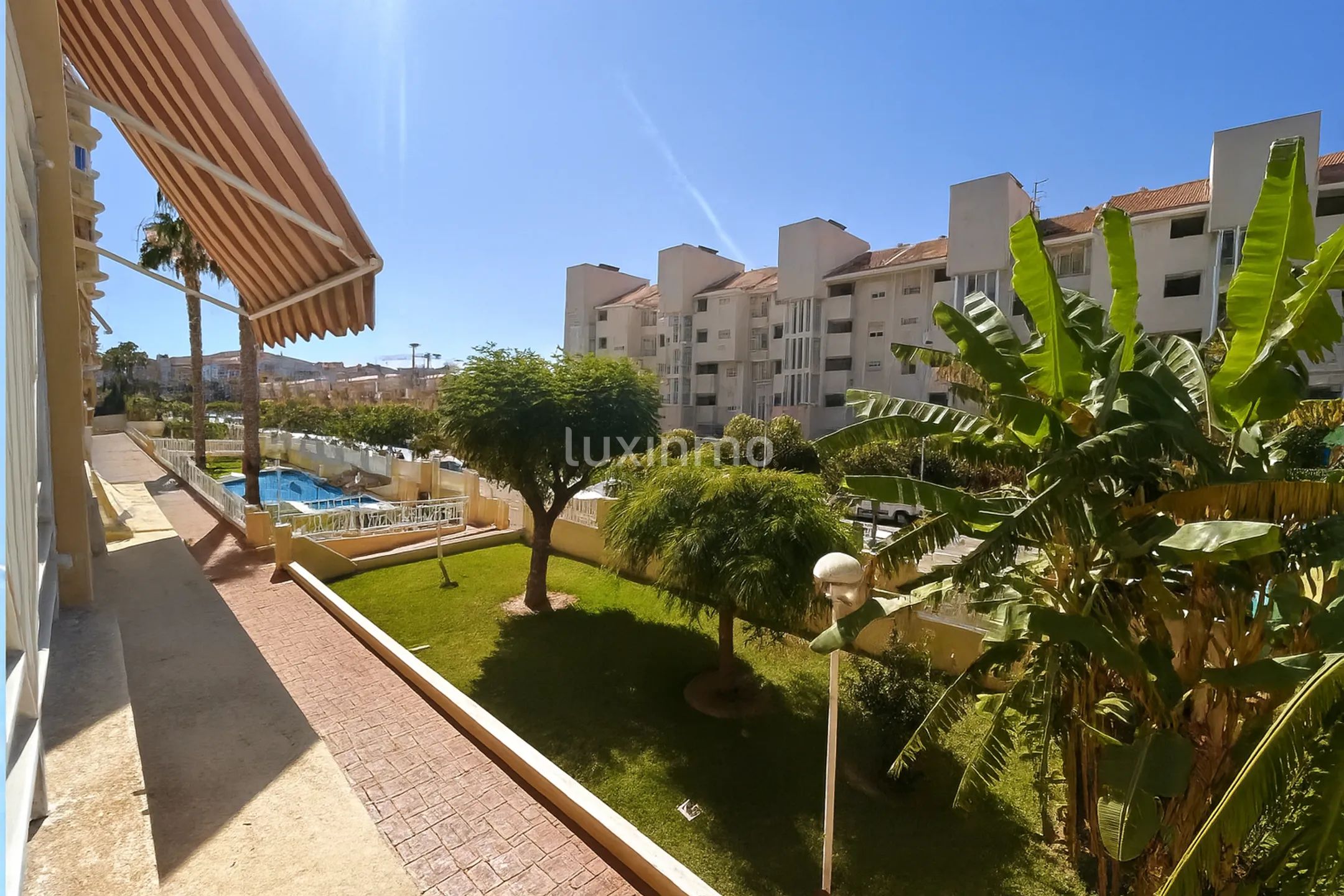 Nieruchomość jest podzielona na dwie jasne dwuosobowe sypialnie, kompletną łazienkę z nowoczesnymi wykończeniami, funkcjonalną kuchnię i przytulny przeszklony taras z przyjemnym widokiem. Posiada wbudowane szafy, indywidualne ogrzewanie i jest w bardzo dobrym stanie. Znajduje się na pierwszym piętrze budynku z windą, z dostępem przystosowanym dla osób o ograniczonej sprawności ruchowej. Na terenie urbanizacji znajduje się wspólny basen, ogród, plac zabaw dla dzieci i praktyczny wspólny grill na spotkania towarzyskie. Zbudowana w 2001 r. nieruchomość łączy w sobie praktyczność i śródziemnomorski urok.