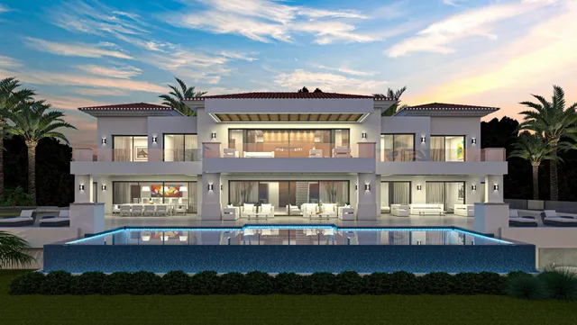 Это проект потрясающей трехэтажной резиденции, с выходом на центральный этаж, расположенный на первом этаже, окруженный садами, и имеющий 10 спален и 11 ванных комнат внутри.