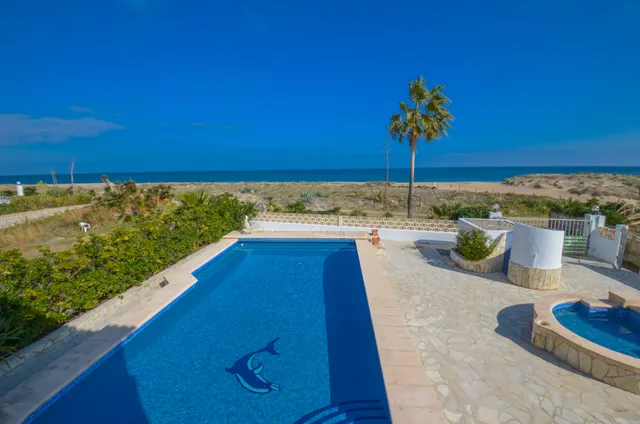 Эта прекрасная вилла расположена менее чем в 1 км от центра города Дения и порта. Вилла находится прямо на пляже. Сад с большим бассейном и фонтаном не требует особого ухода. Дом имеет большую зону ная со встроенным барбекю и может похвастаться прекрасным видом на море. На первом этаже дома находится открытая кухня с барной стойкой и большая гостиная и столовая. В задней части этой комнаты находится гостевой туалет, большая комната для стирки и хранения и вход. На верхнем этаже находятся 3 спальни с двуспальными кроватями, одна из которых - главная с ванной комнатой, а две другие делят большую ванную комнату.