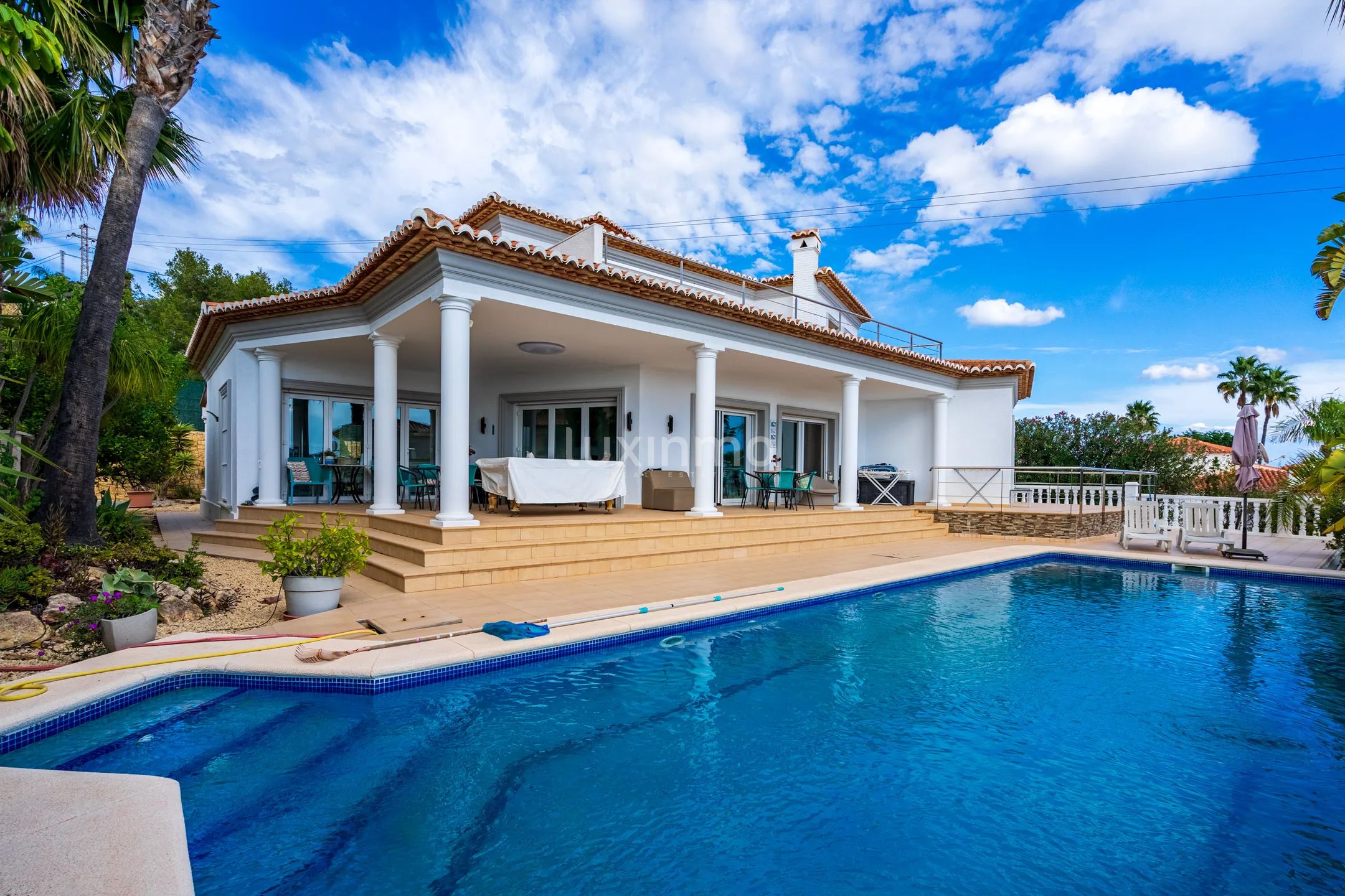 Представляем вашему вниманию потрясающий отдельно стоящий дом в средиземноморском стиле, расположенный в живописном районе Комета-Каррио в Кальпе/Кальпе. Этот просторный и элегантный дом выставлен на продажу и предлагает фантастическую возможность для тех, кто ищет комфортное место для отдыха с панорамным видом на море, горы и деревню. Вилла предлагает на первом уровне 2 спальни (21,30м2 и 16м2) со встроенными шкафами и 2 большие ванные комнаты (5,65м2 и 4,60м2), удобную большую гостиную (40,50м2), выходящую на большую крытую террасу и к бассейну, и хорошо оборудованную кухню (22,10м2) с выходом через большие раздвижные двери к бассейну и на задний двор, гостевой туалет, ведущий на верхний уровень по внутренней лестнице, где находятся две большие спальни (21,30м2 и 16м2) и кабинет/спальня (12м2), а также большая терраса 17,40м2 с прекрасным видом на море. Вилла была построена в 2005 году. Красивый задний двор с фруктовыми деревьями и средиземноморскими растениями, ориентированный на запад, гарантирует, что вы будете наслаждаться захватывающими закатами над горизонтом.