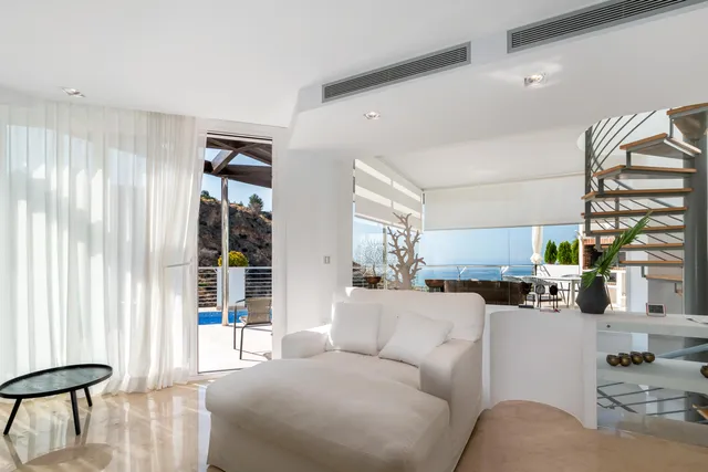 Дом оснащен рядом высококачественных элементов и оборудования, обеспечивающих удобство и комфорт его обитателей. Внешняя отделка дома включает террасу площадью 15 м2, с которой можно любоваться потрясающими видами, и частный бассейн с подогревом. Также имеется парковка, частный гараж и дополнительное место для хранения.