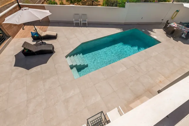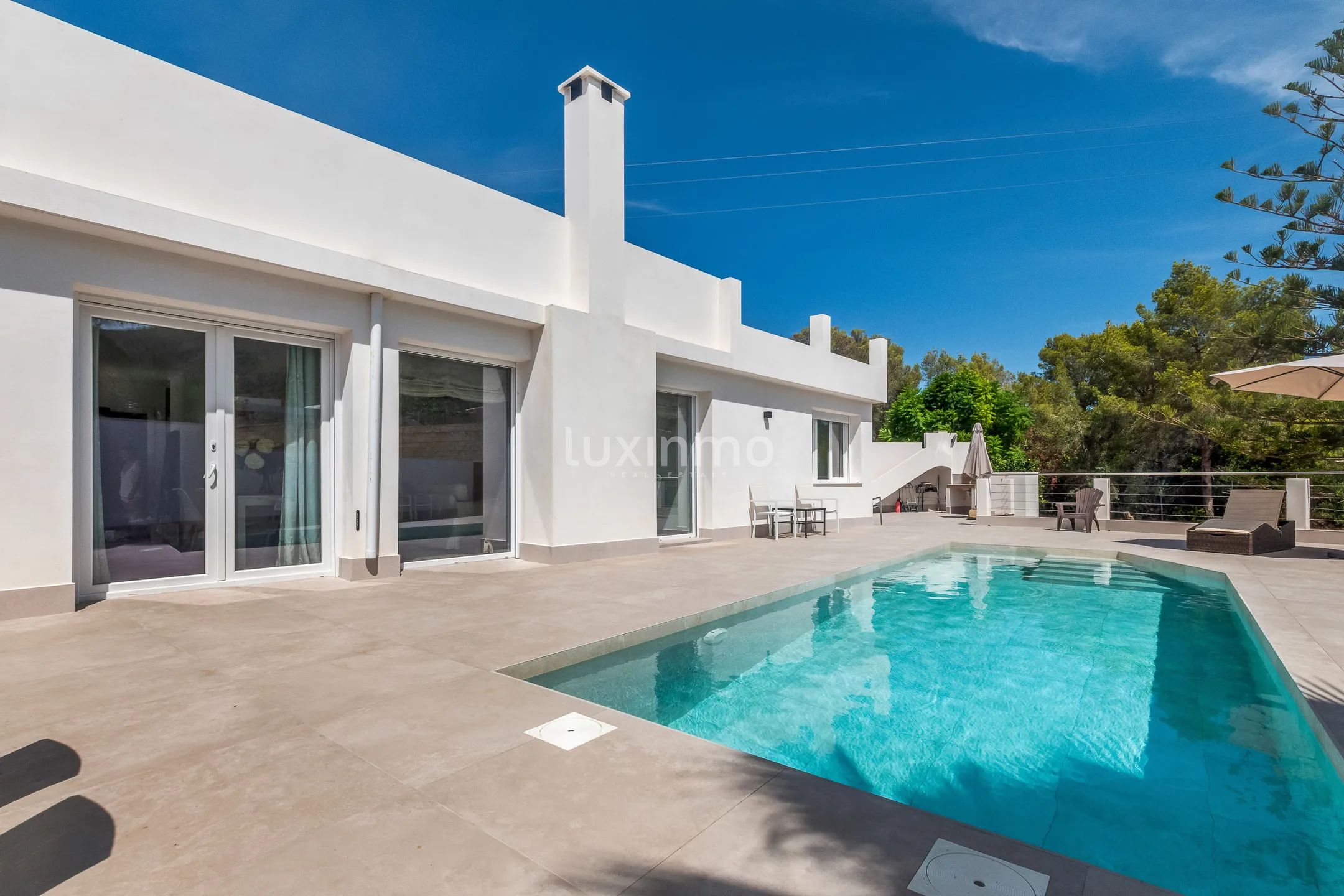 Дом состоит из 3 просторных спален, 2 ванных комнат, кухни, совмещенной с гостиной с видом на сад и бассейн, небольшой прачечной и солярия площадью 80 м2, подготовленного для строительства второго этажа.
