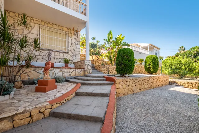 Красивая вилла площадью 263 м2, построенная на участке площадью 1008 м2, состоит из: большой спальни с ванной комнатой, 2 других больших спален с общей ванной комнатой; полуоткрытой кухни со столовой рядом с ней, небольшой кладовой с другой стороны кухни и очень уютной небольшой гостиной с видом на море. Есть еще одна столовая и гостевая гостиная - все снаружи - ведущие на террасу, которая окружает половину дома. Дом имеет два входа, ведущих на две улицы; один из них ведет в заднюю часть дома, где есть терраса, ведущая на кухню, а другой вход - главный, где расположены два парковочных места. Над гаражом недавно было построено новое помещение, которое используется в качестве гимнастического зала, но может быть переоборудовано в независимую квартиру. Вилла окружена участком с деревьями и растениями - достаточно места, чтобы сделать бассейн с шезлонгами и барбекю.