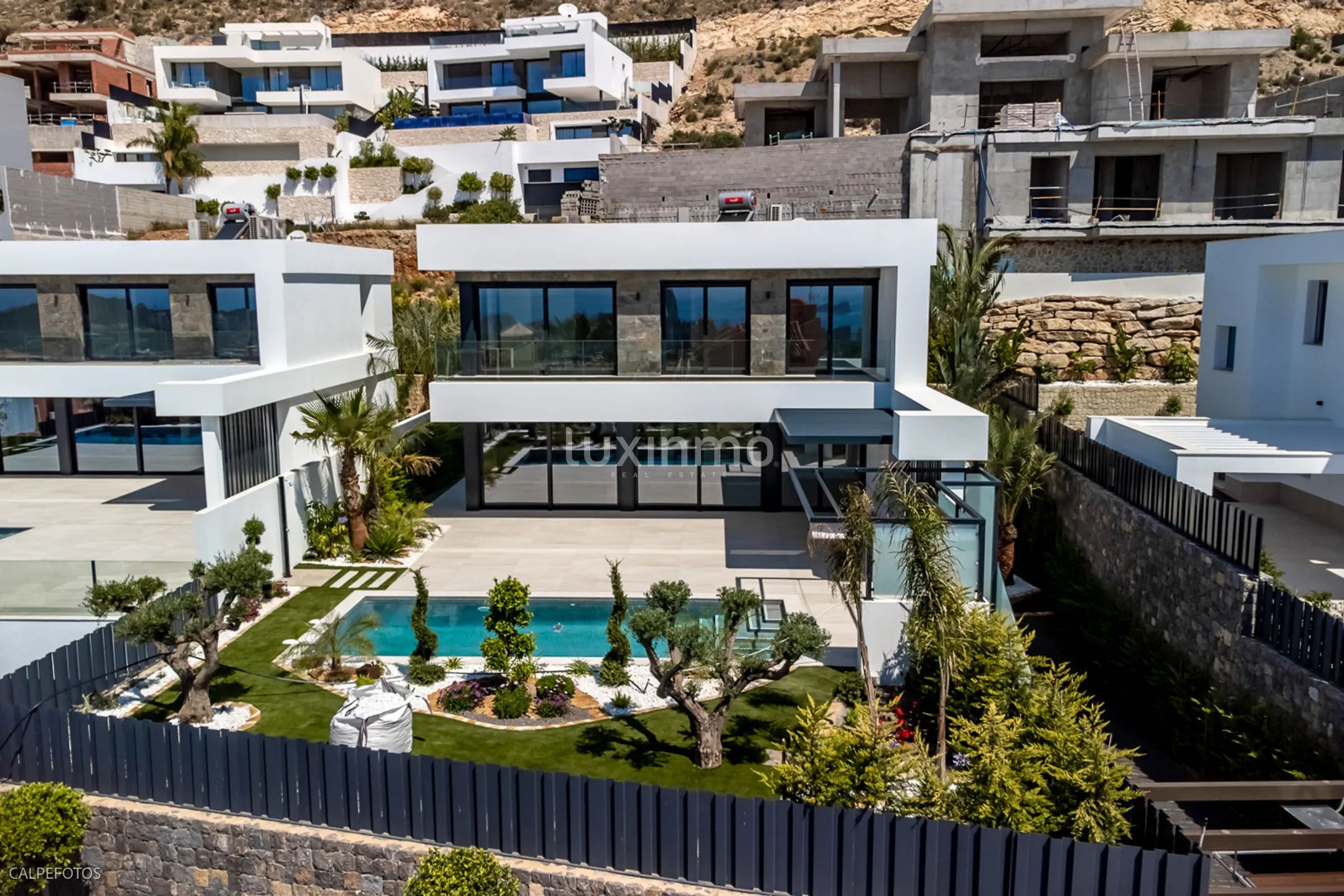Роскошная вилла расположена в Сьерра Кортина, в нескольких минутах ходьбы от роскошного отеля Asia Gardens, парка развлечений Terra Mitica, полей для гольфа, отеля Villa Aitana и др. Улица напрямую связана с выездом AP-7. В нескольких метрах от отеля находятся все коммерческие районы: CC La Marina, Crossroads, Leroy Merlin, Mercadona, Mediamarkt. Рядом находятся все услуги самого мощного туристического центра Коста Бланки, а до прекрасных пляжей Кала де Финестрат и Поньенте Бенидорм добирается всего за 5 минут на машине. Всего в 40 километрах от города Аликанте.