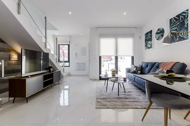 Этот новый комплекс расположен в жилом районе Полоп, живописном анклаве между Средиземным морем и горами. Дома, все с независимым участком, с парковочным местом, частным бассейном 6 x 2,5 м. имеют аккуратное распределение: На первом этаже находится просторная гостиная-столовая и открытая кухня с выходом на крыльцо и к бассейну, 1 спальня со встроенным шкафом и 1 полная ванная комната. На втором этаже расположены 2 спальни со встроенными шкафами, 2 ванные комнаты и большая терраса с видом. По желанию можно построить солярий и подвал с дополнительной спальней и ванной комнатой + многофункциональное помещение. ОБОРУДОВАНИЕ: Все дома включают автоматические жалюзи, подогрев полов во всех ванных комнатах, предварительную установку канального кондиционера, гидромассажную колонну в главной ванной комнате, солнечную батарею для горячей воды, 4 фотоэлектрические панели для электрической энергии и сертификат энергоэффективности класса А. ЗОНА: Расположение в жилом районе в Полопе, очень тихий, с природой вокруг, с видом на горы и море. Рядом со всеми удобствами в 15 минутах от пляжей Бенидорма и с быстрым доступом ко всем видам услуг, таких как многочисленные международные школы в этом районе. 45 минут езды до аэропорта Эль Альтет или порта Аликанте.