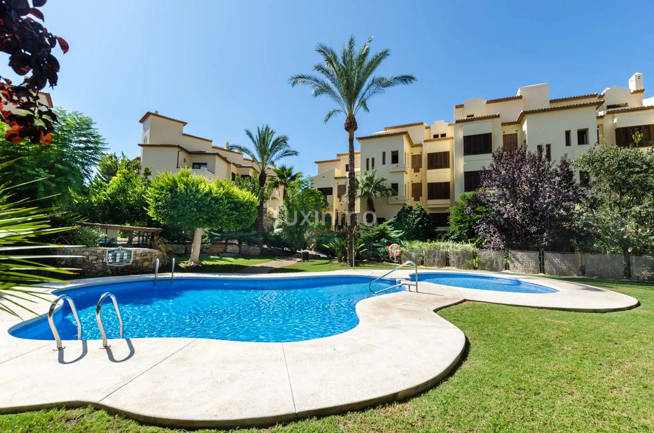 Продается квартира с 2 спальнми в урбанизации Вилла Гадеа, Альтея. В квартире 2 спальни, 2 ванные комнаты, отдельная кухня с прачечной, гостиная-столовая и терраса с собственным джакузи. С террасы открывается вид на общий сад и бассейн.