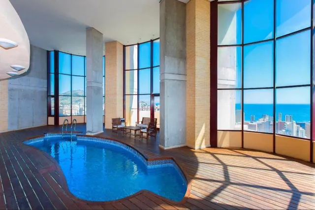 Роскошные апартаменты в Бенидорме с впечатляющим видом на город. Дом находится на 36 этаже и имеет 176 м2 жилой площади. Он распределен на одном этаже, и имеет прихожую, большую гостиную-столовую с большим количеством естественного све��а, большую независимую кухню полностью оборудованную, прачечную и галерею. В отеле также есть две двухместные спальни с ванными комнатами, и одна из них с большой гардеробной и дополнительным туалетом для гостей. Дом полностью меблирован в очень современном стиле, с видом на 360º.