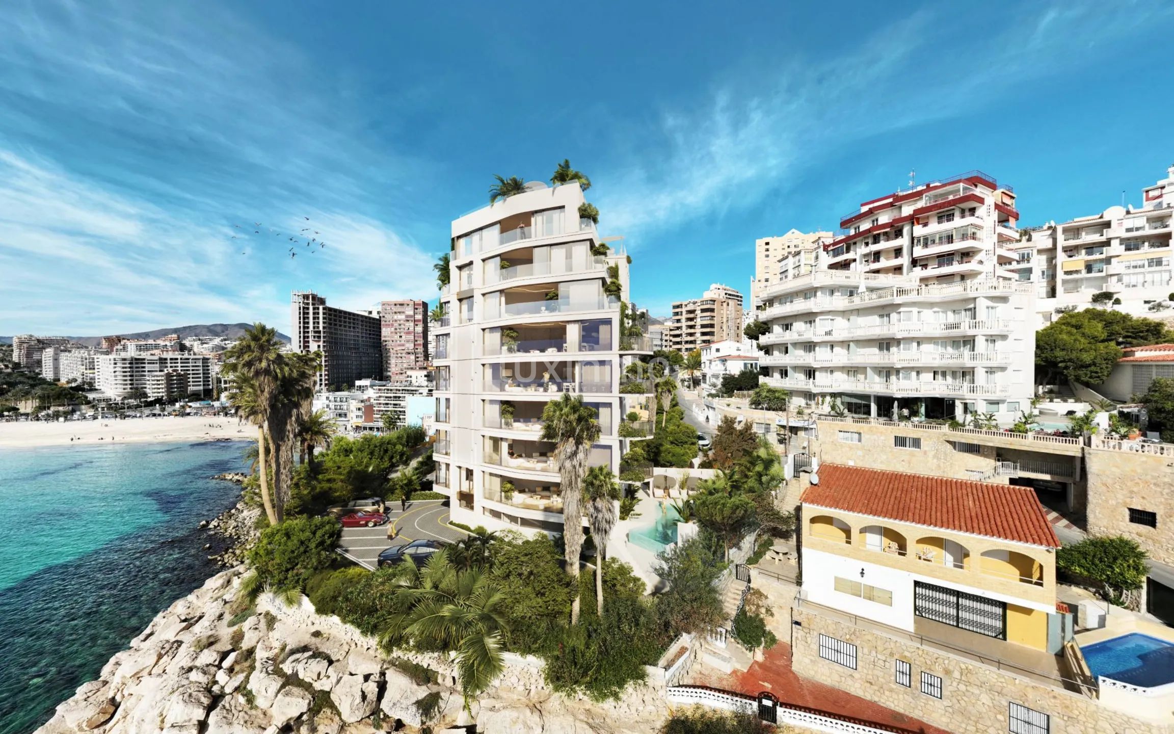 Эксклюзивное здание всего из 8 квартир и дуплексов, один этаж с прямым доступом на лифте. Здание расположено на первой линии Кала де Финестрат, откуда открывается потрясающий вид на море и скалы. Урбанизация закрытая, с общей парковкой и бассейном. Ориентация здания - юго-восток, поэтому в квартирах будет солнце в течение всего дня. ОБОРУДОВАНИЕ: В квартирах есть полностью оборудованная кухня с высококачественными настенными и базовыми шкафами. Двери белого матового цвета или аналогичные, с тормозными демпферами на всех дверцах и ящиках. - Столешница - мебель марки SILESTONE. - Раковина с хромированными смесителями и регулируемыми кранами. - Холодильник Miele, керамическая варочная панель, стиральная и посудомоечная машины, холодильник, вытяжка, духовка и микроволновая печь. Микроволновая печь Miele. Кондиционирование воздуха в квартирах будет осуществляться с помощью теплового насоса через воздуховоды, размещенные в подвесных потолках, с общим контролем с помощью термостата, регулируемого независимо в каждой квартире. В каждой комнате с помощью решеток будет установлен термостат, регулируемый самостоятельно. Бытовая горячая вода будет производиться с помощью аэротермальной энергии, которая является полностью возобновляемой и чистой. Таким образом, в квартирах установлена система домашней автоматизации SIMON 100 с технологией Z-WAVE для управления кондиционерами, моторизованными жалюзи или ставнями и общим освещением. Вся плитка и сантехника в квартирах будет из керамогранита Porcelanosa. Кроме того, внешняя отделка будет выполнена из алюминия, с двойным остеклением и воздушной камерой, покрытого черным лаком марки Schüco с функцией термомоста. термомост. УРБАНИЗАЦИЯ: Квартира расположена в современном закрытом жилом комплексе, где есть общие сады, общий бассейн и джакузи. АРЕАЛ: Бенидорм-Поньенте: Манхэттен Средиземноморья. Бенидорм известен как город небоскребов Средиземноморья, так как здесь находятся одни из самых высоких зданий в Европе и большое их количество по всему городу. Район, гдеИнтемпо, пляж Поньенте, является важным деловым районом в Валенсийском муниципалитете. Это тихий район по сравнению с районом Леванте, расположенным всего в 10 минутах езды на автомобиле, где находится большинство ночных клубов и ночных развлечений города. Рядом с Intempo находятся медицинские центры, школы и институты, торговый центр La Marina, рестораны и всевозможные услуги.