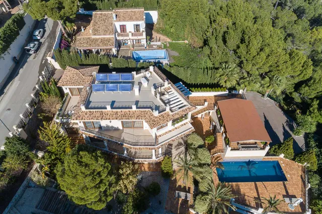 Большая современная вилла, состоящая из 5 спален в главном доме и двух комнат в гостевом доме, второй этаж со спа, финской и турецкой сауной, джакузи, зоной отдыха, с выходом на террасу, где есть зона отдыха и барбекю, гараж на 3 машины и парковка более чем на 10 машин, бассейн, зона отдыха в саду, террасы с видом на море.