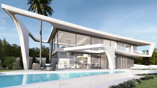 Современная вилла на продажу в Хавии, Аликанте. Уникальная дизайнерская вилла с привилегированным расположением в очень тихом жилом районе, всего в нескольких минутах от пляжа, всех видов магазинов, международных школ и гольф-клуба Хавии. Вы будете наслаждаться панорамным видом на море и горы.