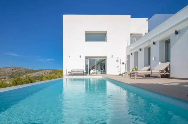 Вилла была построена в 2013 году из высококачественных материалов в стиле Ибицы. Полы с подогревом на всех уровнях работают с помощью теплового насоса. Солнечная энергия питает бак для горячей воды объемом 500 л. Новые фотоэлектрические панели обеспечивают до 10 кВт солнечной энергии. Инфинити-бассейн работает на электролизе соли (без хлора) и может подогреваться. Во всех комнатах установлены кондиционеры. Летняя кухня полностью оборудована и может быть полностью закрыта остеклением. Все окна обеспечивают наилучшую изоляцию благодаря двойному остеклению, оконные рамы изготовлены из алюминия. Система сигнализацииместо доступно. На полностью огороженной территории есть крытое парковочное место.