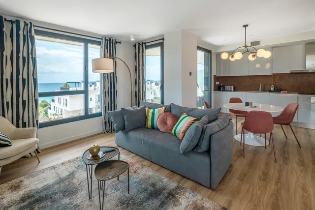 Современная квартира с захватывающим видом на море и горы в Вильяхойосе. Эта красивая квартира площадью 108 м2 имеет 2 спальни и 2 ванные комнаты. Она расположена всего в нескольких шагах от пляжа. Снаружи есть крытая терраса и открытая терраса, где можно наслаждаться каждым мгновением дня.