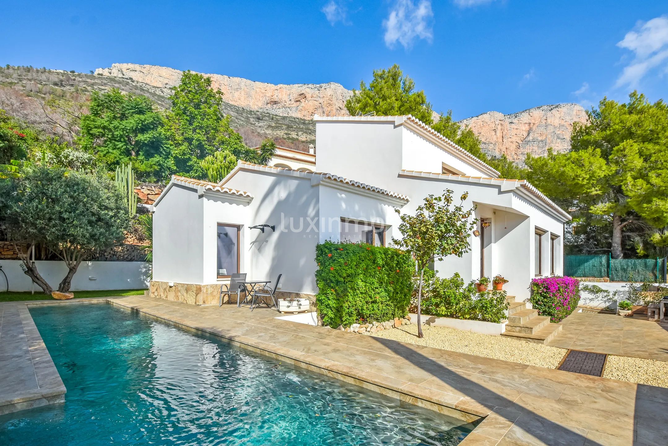 Дом, окруженный большими участками, расположен в знаменитом районе Эрмита-Монтго. Связь с природой полная, виды на горизонт захватывающие, а расположение стратегическое. Он находится всего в 10 минутах езды от автомагистрали и может быть связан с Явеей и Денией. Кроме того, рядом есть поля для гольфа, теннисный корт и яхт-клуб.