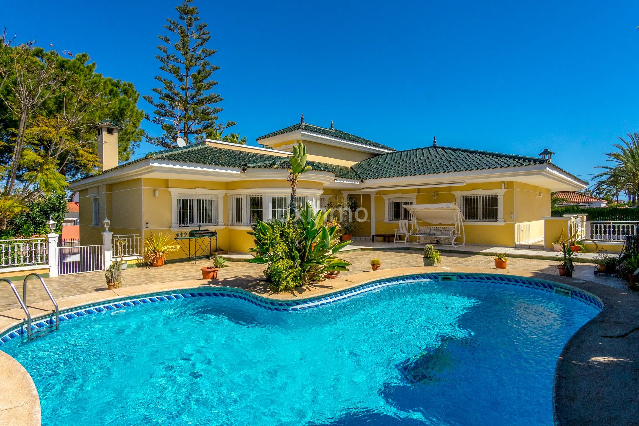 В доме есть тренажерный зал и система центрального отопления, а также частный бассейн идеального размера и гидромассажная ванна. Такие элементы безопасности, как сигнализация, круглосуточная охрана, защищенная дверь, электрические жалюзи и двойное остекление, обеспечивают спокойствие жильцов.