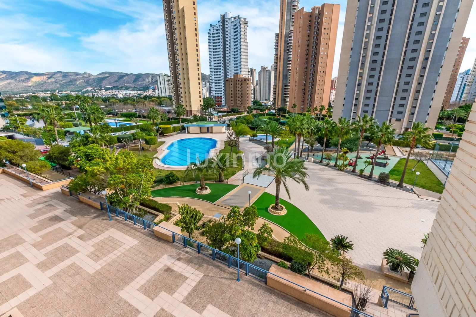 Квартира в современном стиле с южной стороны, состоящая из 2 спален и 2 ванных комнат, расположена в престижном районе Пуэбло Леванте в Бенидорме. Площадь квартиры составляет 127 м2, что делает ее комфортной и стильной. Построенная в 2004 году, квартира может похвастаться видом на урбанизацию здания - бассейн и сад.