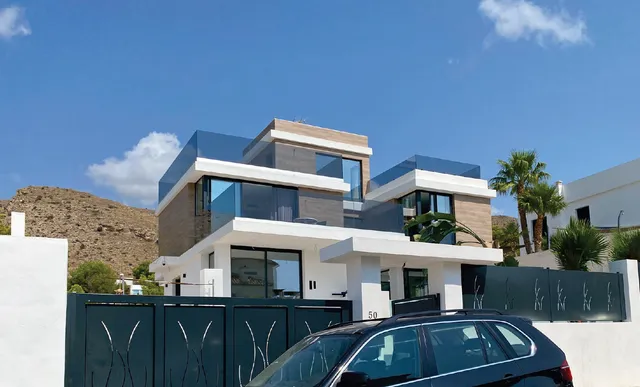The house contains all modern technology as you can expect from a house at this price point, air-conditioning duct in all rooms, floor heating, an aerothermal boiler with heat pump, a large underground garage for up to 6 cars and there is still enough space around the house to park another 3-4 cars. At the back of the house there is a green zone, nobody can build there. At the front of the house you have views to the sea and the skyline of the city, Benidorm.