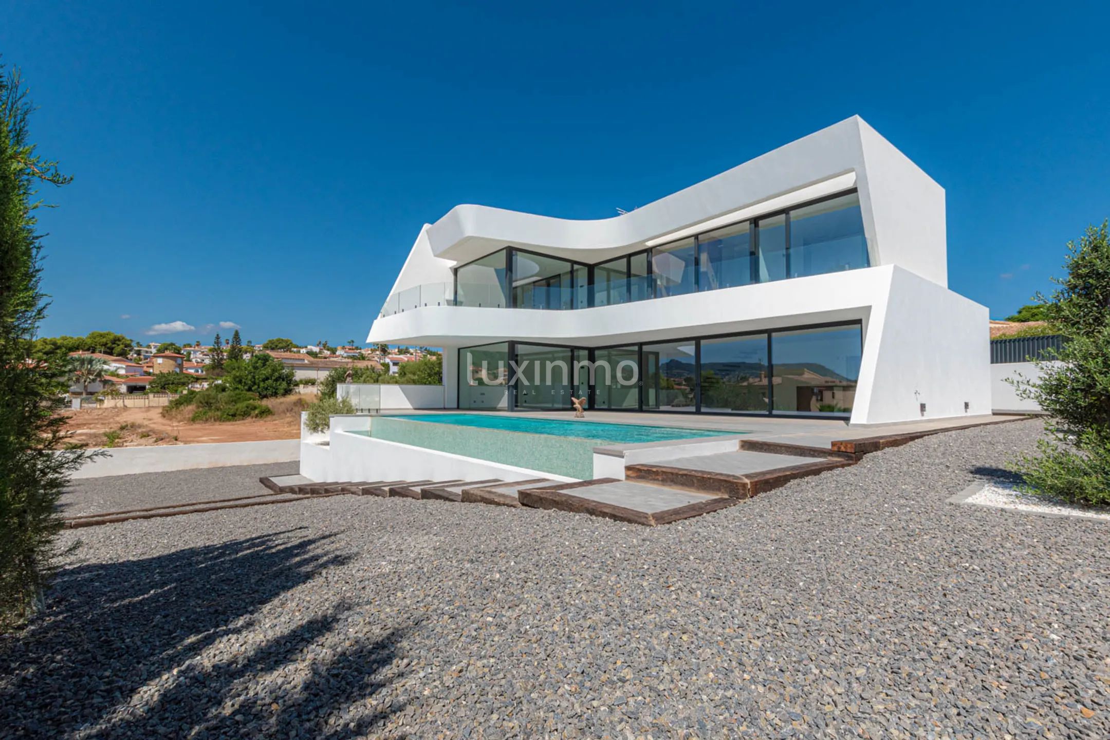 Unique contemporary architectural style with innovative and avant-garde lines designed by renowned architect Ramon Gandia. Distance to the beach is 2000 metres.