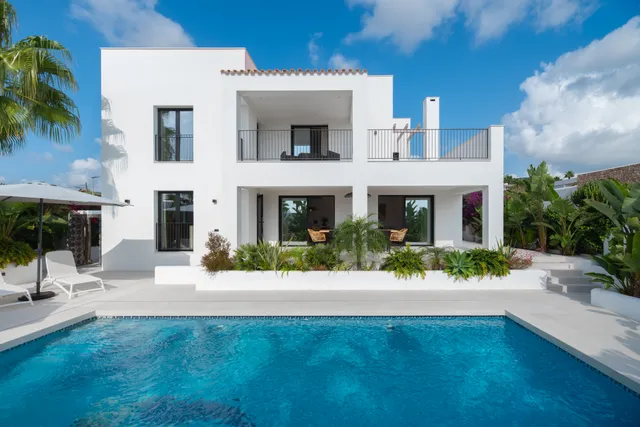 Upplev det bästa av att bo på ön i denna lyxiga moderna villa, omgiven av Sant Jordi de Seas skönhet och charm.s Salines. Missa inte denna otroliga möjlighet att äga en fantastisk fastighet på en av de mest eftertraktade platserna i Sant Josep de sa Talaia.