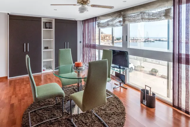 Mycket trevlig och mysig studio med L-format kök i ett öppet rum med havsutsikt. I vardagsrummet finns en bäddsoffa, en garderob som kan öppnas upp och användas som gästsäng, ett runt bord med moderna stolar och en möbel. Lägenheten är mycket ljus eftersom väggen mot havet är ett stort dubbelglasfönster med elektriska persienner. Det finns också ett litet badrum med dusch och ett förvaringsskåp i korridoren som leder till badrummet. Det är det perfekta utrymmet för 1 eller 2 personer som vill ha nära till havet men som vill leva i absolut lugn.