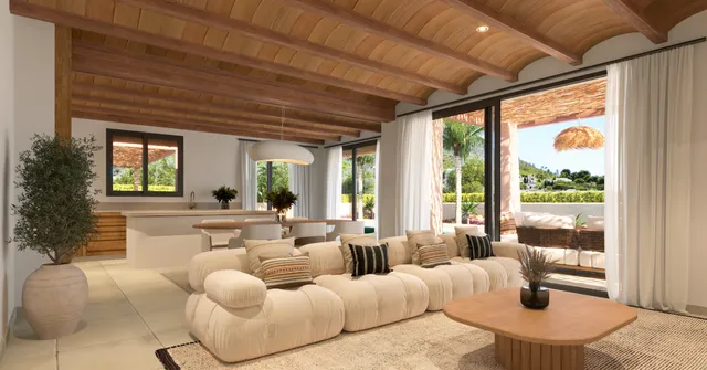 Omfamna lyxliv i detta fantastiska, i projekt Ibiza stil fristående hus beläget i en vacker urbanisering under utveckling i Jávea / Xàbia. Denna söderläge fastighet har en hisnande utsikt över bergen och landsbygden och erbjuder en stor bostadsyta på 154m2 användbar yta och 208m2 byggd yta, allt på en generös 1000m2 tomt. Med 3 rymliga sovrum, 4 badrum och toppmoderna bekvämligheter lovar detta hus, som ska vara klart 2026, en utsökt livsstil. På grund av den sydvästra orienteringen och de stora dubbelglasade fönstren från golv till tak översvämmas allt utrymme av naturligt ljus.