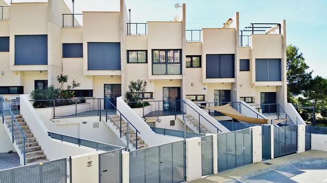 Townhouse duplex with terrace and solarium. It has 75sqm of usable area and 93sqm of built area. Also with a basement of 90sqm and a plot of 103sqm. South facing and with views. On the main floor there is a lounge, kitchen, bathroom and terrace. On the upper floor there are 3 bedrooms, 1 bathroom and another terrace. Solarium above with sea views. Also a large basement of about 90m2.
